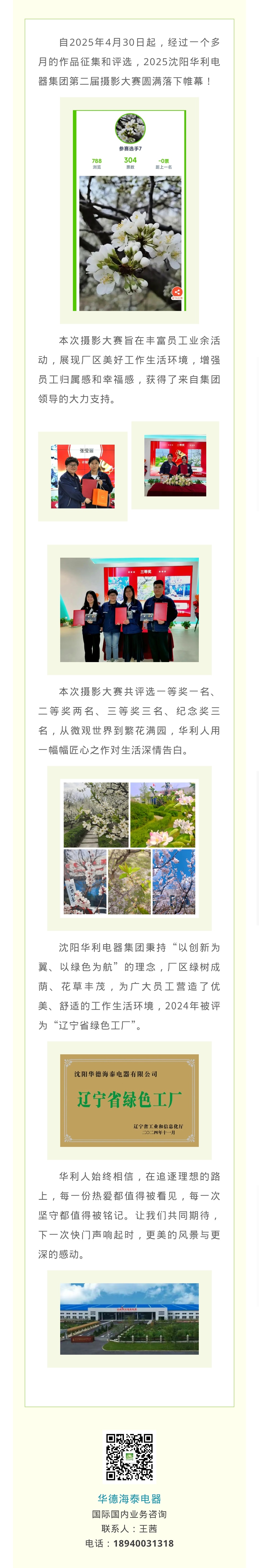 【概要描述】自2025年4月30日起,經(jīng)過(guò)一個(gè)多月的作品征集和評(píng)選,2025沈陽(yáng)華利電器集團(tuán)第二屆攝影大賽圓滿落下帷幕!