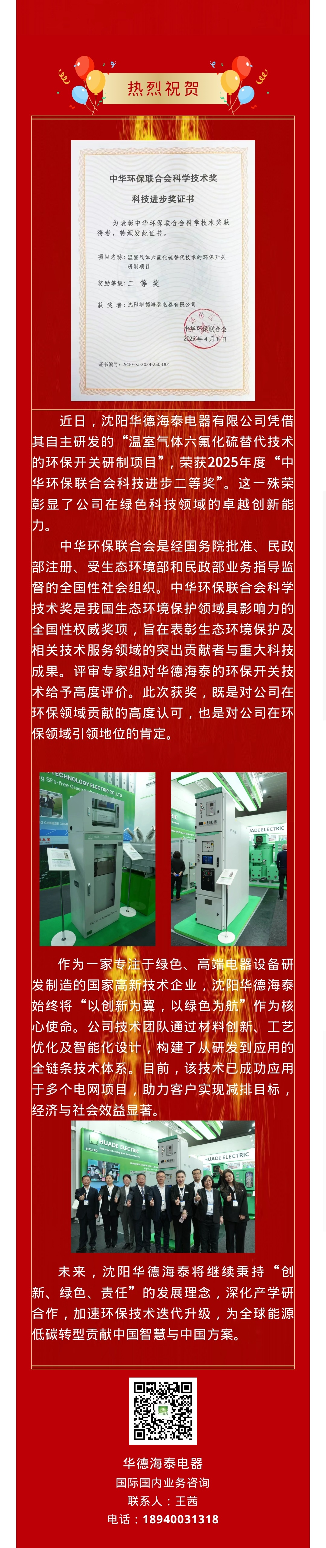 喜報|沈陽華德海泰電器有限公司自主研發(fā)環(huán)保開關(guān)技術(shù)榮獲中華環(huán)保聯(lián)合會科學(xué)技術(shù)獎二等獎